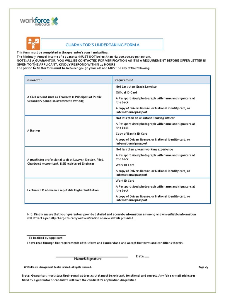 Guarantor letter for job employment pdf. If you do not fully understand the nature of the agreement, then it is recommended that you take independent legal advice before signing. The form will document the guarantor's approval and granted permission to the requests of the organization to have his information from the borrower or the party who is being guaranteed. In a guarantor letter, a person or business is taking financial responsibility for another person or business, should they forfeit on a contract. Please assist me in providing a simple guarantor's form format, which will be filled by employees guarantor/next of kin.